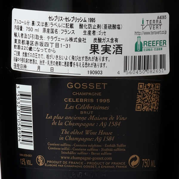 特殊な年となった1995年。37度を超す熱波に襲われ葡萄は完熟した。同時に酸度は偉大な1985年と同じレベルを確保していた。高い熟度と高い酸度を両立しているヴィンテージは非常に珍しいので一部のワインを10年間シュール・リー熟成。デゴルジュマン後、コルク栓で14年間酸化熟成させた特別キュヴェを造った。蔵紹介