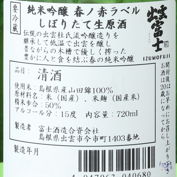 出雲富士 春ノ赤ラベル しぼりたて生原酒