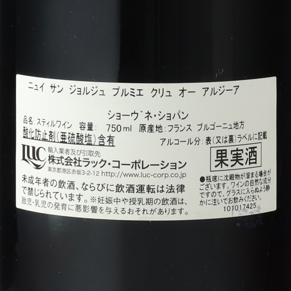 スタッフコメントショーヴネショパンは熟成させるとしみじみ美味しい。派手さとか力強さではなく、出汁系の旨味で癒されます。(営業 安藤)