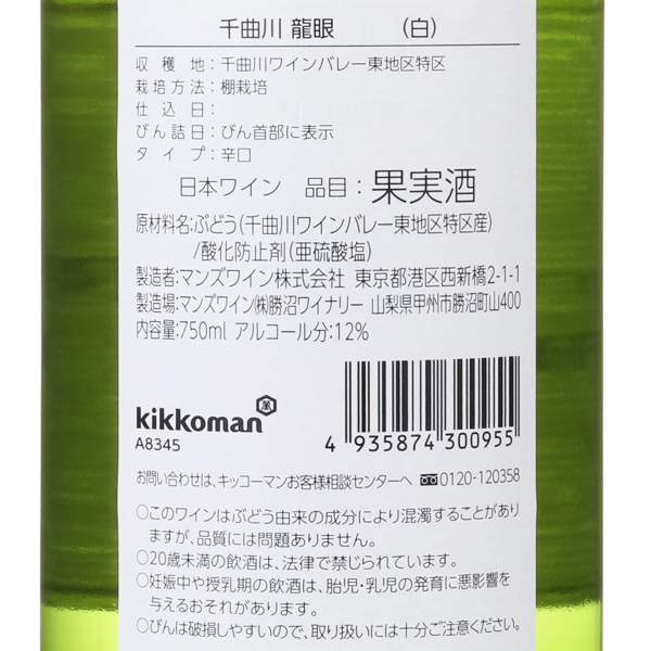 「龍眼」は長野県で「善光寺ぶどう」とも呼ばれ、絶滅寸前の状態からマンズワインが蘇らせ、日本ワインの原料として育成した品種です。小諸ワイナリーの歴史と共に、マンズワインが深い想いを持って大切にしてきました。「龍眼」から造られたワインはすっきりとしたさわやかな酸味で、繊細で気品のあるワインに仕上がります。蔵紹介