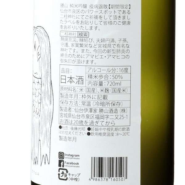 勝山酒造が新型肺炎終息を願い、疫病封じの妖怪「アマビエ・アマヒコ」のイラストをラベルにして、宮城県屈指のパワースポットで有名な二柱神社でご祈祷して頂きました。蔵紹介