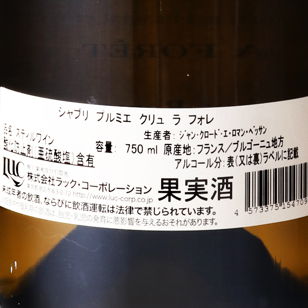シャブリ ラフォレ 2018 / ジャン・クロード・エ・ロマン・ベッサン