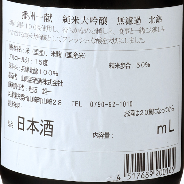 播州一献には播州地域の良質の米・水・環境を使い地酒本来の持つ良さを大切に醸したお酒をどうぞ、との想いがこもっています。現在では杜氏の壺坂専務を中心に、兵庫三大錦のひとつ北錦で醸す等、味わい豊かな食中酒を醸し多くの日本酒ファンに親しまれています。