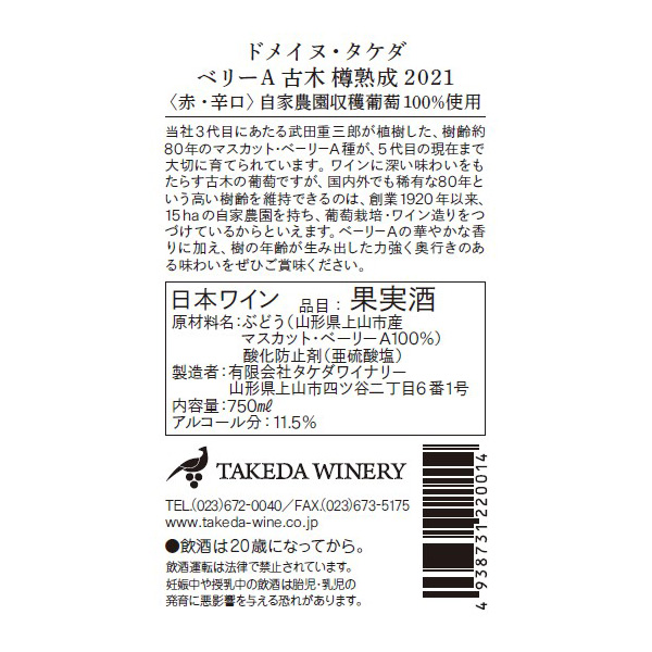 ドメーヌ・タケダ ベリーA 古木樽熟成 2021 / タケダワイナリー