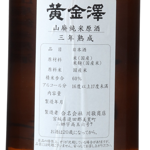 黄金澤 山廃純米三年熟成酒