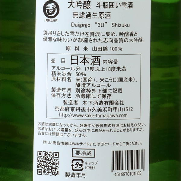 玉川 大吟醸 雫酒 無濾過生原酒
