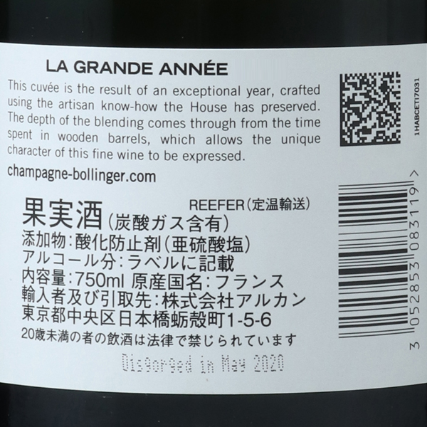 ラ・グランダネはメゾンに脈々と受け継がれたクラフトマンシップの思いが込められたワインです。醸造は全て慣らした小樽を使い、伝統的な製法を用いることで、複雑なアロマとフィネスを兼ね備えるワインに仕上がります。澱と共に長い間熟成させた後、手作業でルミアージュとデゴルジュマンを行います。ワインの熟成期間と、樽を使うボランジェの醸造テクニックがもたらす金色がかった煌めき。ミラベル・プラムのアロマに蜂蜜のタッチがあり、ブラックベリー、カシス、チェリー、ラズベリー等の赤い果実の風味がアーモンドの香りとともに弾けます。マンゴーのエキゾチックなタッチが続き、バニラと繊細な木の香りが溶け込んでいます。ふくよか、芳醇で魅惑的、ミラベルのプラムジャムを思わせ、滑らかさと豊かな風味がはっきりしています。フィニッシュにはチョコレートと柑橘類が織りなす心地よい香りと酸味が感じられ、ミネラリティによってさらに長い余韻があります。とても贅沢なワインです。