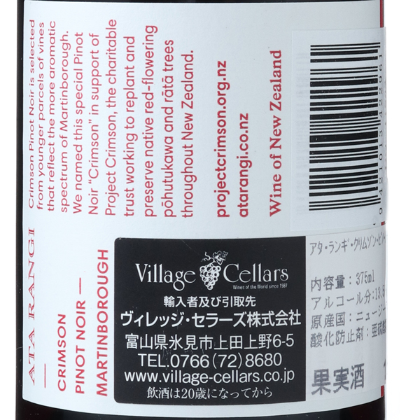 フレッシュな果実味が楽しめるセカンドラベル。プラム、クランベリーに甘草、スパイスの風味が縁取り、ジューシーな口当り。ニュージーランドの天然植物ポフツカワとラタの保護を目的に、このワインの販売による収益の一部がプロジェクト・クリムゾンに寄付されます。蔵紹介