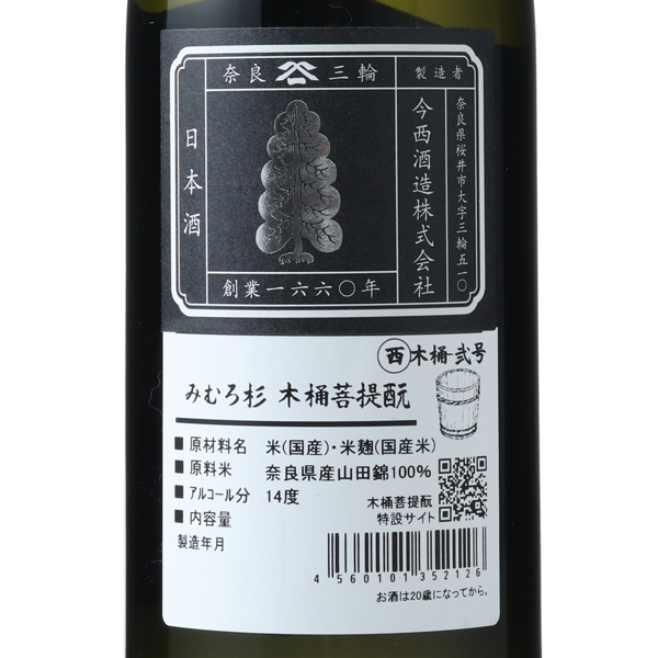 みむろ杉の醸造哲学は「清く、正しい、酒造り」。追求されつくした透明でなめらかな飲み口に加え、そやし水由来の力強さと厚みのある味わい、そして木桶に棲みつく微生物が生み出す複雑味と香り。一見相反する要素が酒の神が宿る三輪の仕込みのちからで、絶妙な調和を醸します。すべての工程を機械化せず、自然をそのまま活かす醸造手法の「みむろ杉 木桶菩提もと」にはその年の自然、さらに木桶ごとに異なる個性が楽しめます。
