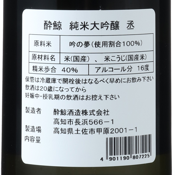 「すべて高知県産」にこだわった飲みやすく穏やかな純米大吟醸。酔鯨酒造では、高知県産「吟の夢」を使用し純米酒、純米吟醸と20年以上に渡り酒造りを行ってきました。しかし、純米大吟醸造りではいまだかつて納得するものが出来ず、本商品では米作り、仕込み水の探求、酵母の選定から取り組み、いま考える「吟の夢」で醸す最高峰のお酒に仕上がっています。A-14酵母が表現する爽やかな吟醸香と、磨かれた吟の夢からくる上品なキレの良さに「お水の丸みと旨味」を楽しんでいただける、飲みやすさが魅力の一品です。