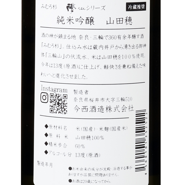 酒の神に見守られ醸されるお酒。酒の神が鎮まる日本最古の神社大神神社、その御神体である三輪山、日本最古の杜氏が祀られる活日神社のある三輪の地に蔵はあります。古の時代より深く結び付いてきた神、三輪、酒。その、他にはない歴史、風土、文化をバックボーンとして生まれたのがみむろ杉です。350年以上に渡って続くこの銘柄を現在支えるのは若手蔵元今西将之さんと、平均年齢20代の若いスタッフたち。