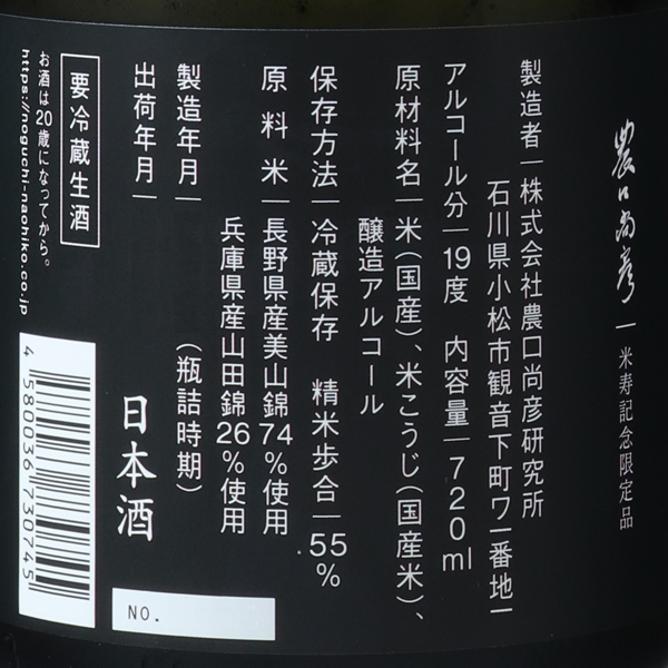 農口尚彦 88YEARS OLD Special Edition 無濾過 生原酒 Vol.2