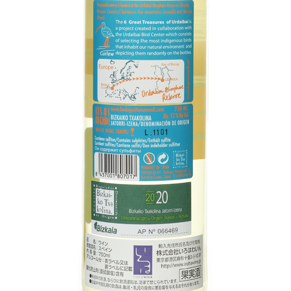ゲルニカ生物保護区にあるワイナリー。12の町にまたがった18のぶどう畑より石灰質、砂質、土泥質等の畑から、選果して収穫。様々なタイプを手掛けており、革新的な造り手として評価されています。バランスがよく、フレッシュでやわらかい口当たりです。柑橘や、白い花、アプリコットやアニスのようなニュアンスもあります。余韻が長く、ほんのりとした洗練された苦みが味わいを引き締めてくれます。良い意味でチャコリらしいチャコリ。イチャスメンディのスタンダードチャコリとなります。ゴーヤ、茄子などの夏野菜、焼き魚(鱸、鯵)などに。使用品種:オンダラビ・スリ50%、オンダラビ・スリ・セラティエ(プティ・クルヴュ)50%
