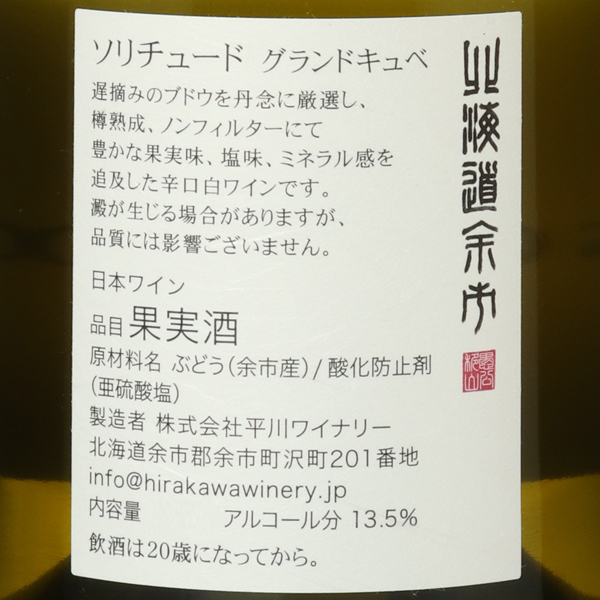 ソリチュード・グランドキュヴェ 2021 / 平川ワイナリー