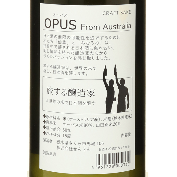 仙禽・みむろ杉がオーパスで醸す新商品昨年、アメリカ産カルローズ米を使用して仙禽とみむろ杉がそれぞれ仕込んだ 『仙禽×みむろ杉 From BROOKLYN』。第二弾はオーストラリア産オーパス米を使用して仕込んだ『仙禽×みむろ杉 OPUS From Australia』をリリースします。