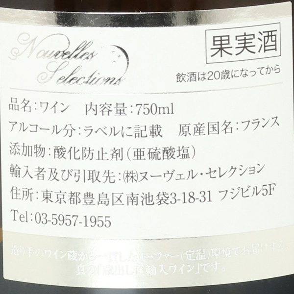 レ・ベル・フィーユ畑より、平均樹齢40年。天然酵母のみを使用し、樽で一次発酵、マロ発酵。シャサン社製「グラン・ファン」の新樽40%、カヴァン社製ジュピーユ森産の2〜3回使用した樽60%で18ヶ月間樽熟成。蔵紹介