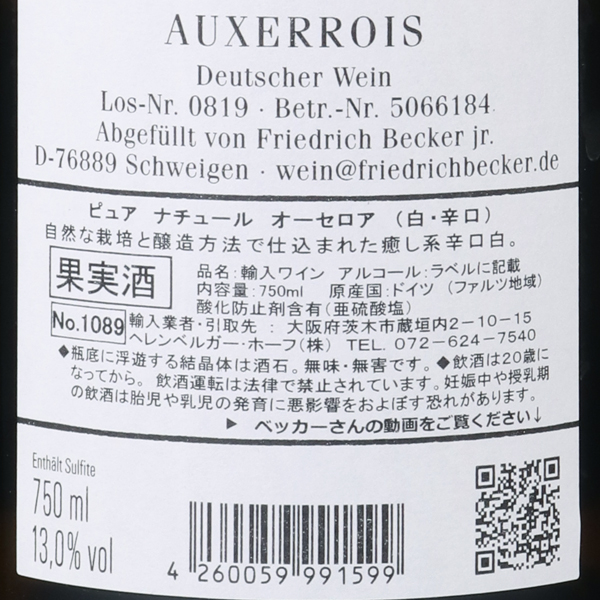 ピュア・ナチュール・オーセロワ 2019 / フリードリッヒ・ベッカー