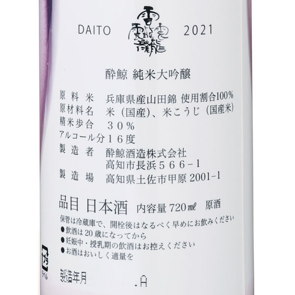 酔鯨 純米大吟醸 DAITO 2021 *クール便のみ