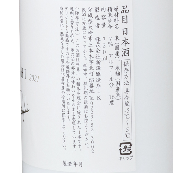 飲み疲れしない究極の3杯目を作ろう。創業1873年。2002年に宮城県最年少杜氏となった新澤巌夫社長を筆頭に、若き蔵人が集まる期待の蔵元です。 出荷管理には特に気を配り、しっかりと冷蔵管理のできる酒販店だけに販路を限定しており、全てのお酒は、生詰めで瓶燗火入れ、瓶貯蔵が行われ、酒質が少し若く、固い状態で出荷されます。 その理由は、流通の過程から消費者が口にするまでの時間経過を考えての事です。 究極の食中酒を意識し、一層食材を引き立てること、また、冷で爽やかな酸がいきてくるように造りに取り組んでいます。