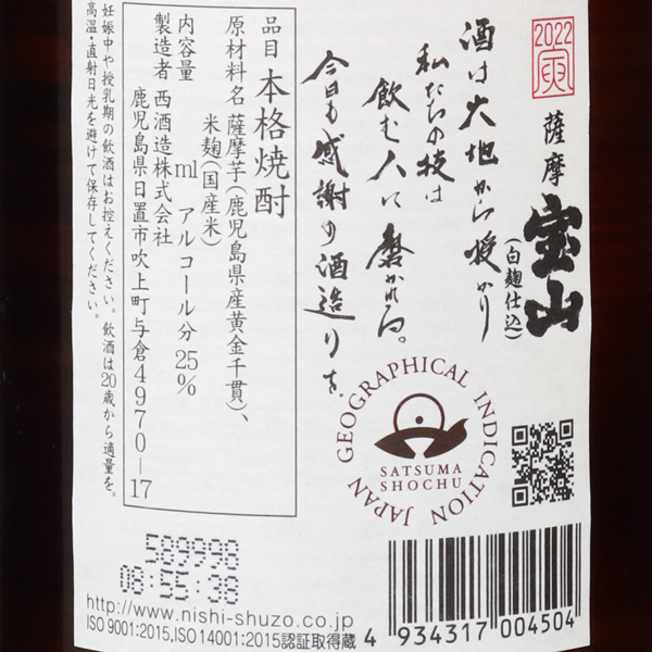 薩摩宝山 干支ラベル2022 寅 芋焼酎 25度 / 西酒造