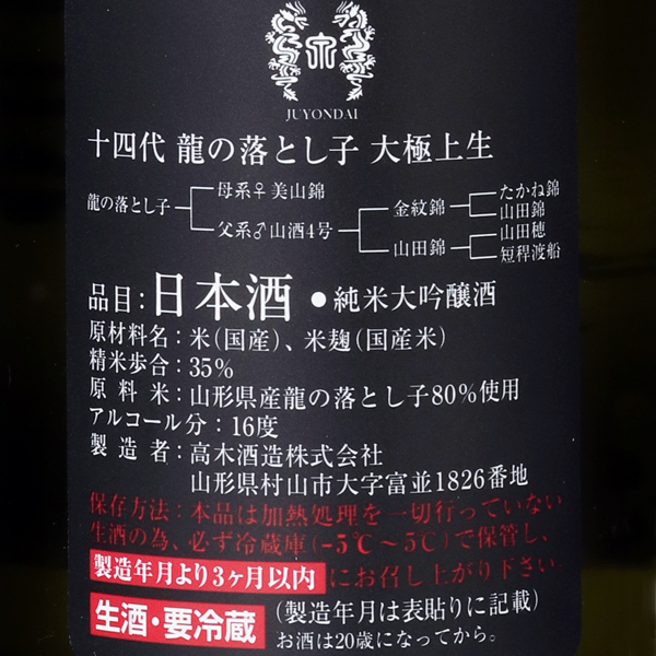 【プラチナ会員限定】十四代 龍の落とし子 大極上生 720ml / 高木酒造