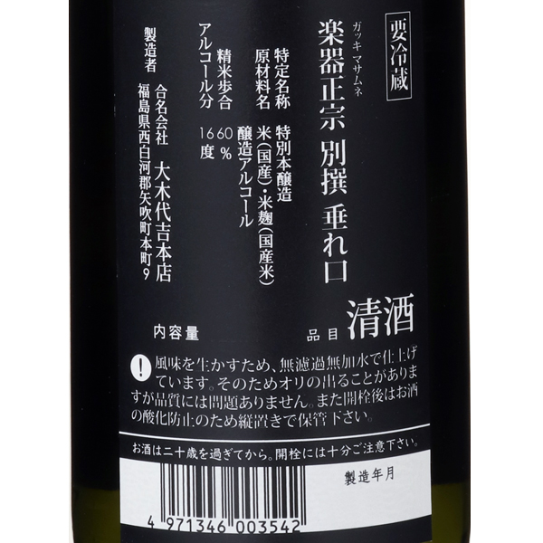 楽器正宗 特別本醸造 別撰 垂れ口