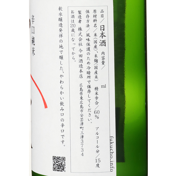 八反錦や八反など広島県産酒造好適米のルーツとなった幻の米「八反草」の育成・醸造に取り組み、その個性を引き出す事で、この地でしか表現出来ない味わいを追求しています。また、安芸津町は牡蠣を初めとする海産物や国内有数のレモン産地。瀬戸の風を感じる町の酒として、牡蠣に合う海風土(シーフード)など、お酒の新たな楽しみ方の提案も積極的に行っています。