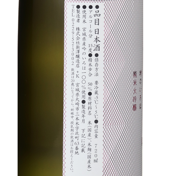 飲み疲れしない究極の3杯目を作ろう。創業1873年。2002年に宮城県最年少杜氏となった新澤巌夫社長を筆頭に、若き蔵人が集まる期待の蔵元です。 出荷管理には特に気を配り、しっかりと冷蔵管理のできる酒販店だけに販路を限定しており、全てのお酒は、生詰めで瓶燗火入れ、瓶貯蔵が行われ、酒質が少し若く、固い状態で出荷されます。 その理由は、流通の過程から消費者が口にするまでの時間経過を考えての事です。 究極の食中酒を意識し、一層食材を引き立てること、また、冷で爽やかな酸がいきてくるように造りに取り組んでいます。