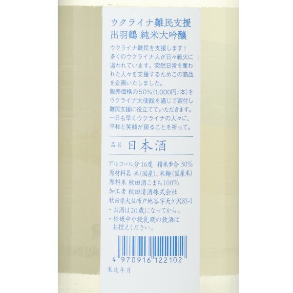 出羽鶴 ウクライナ難民支援 純米大吟醸