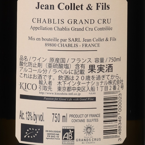 シャブリ・グランクリュ・レ・クロ 2020 / ジャン・コレ