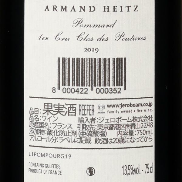 ポマール・1er・クロ・デ・プチュール・モノポール 2019 / アルマン・ハイツ