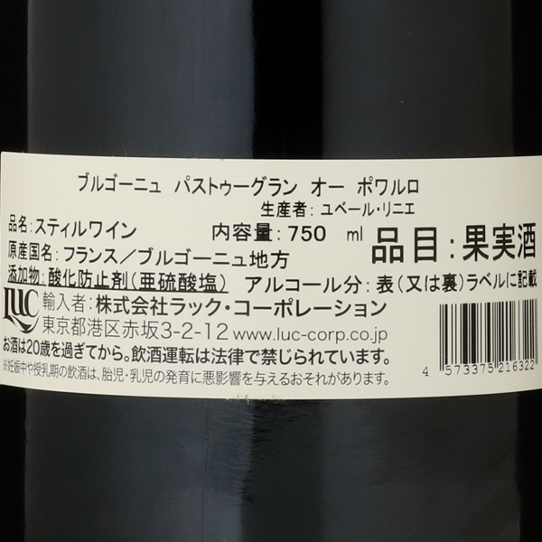 ブルゴーニュ・パストゥーグラン・オー・ポワルロ 2019 / ユベール・リニエ