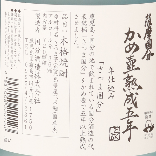 薩摩国分 かめ壺熟成5年 芋焼酎 36度 / 国分酒造