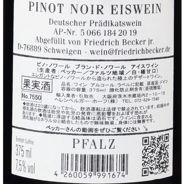 アイスワイン・ブラン・ド・ノワール 2018 / フリードリッヒ・ベッカー