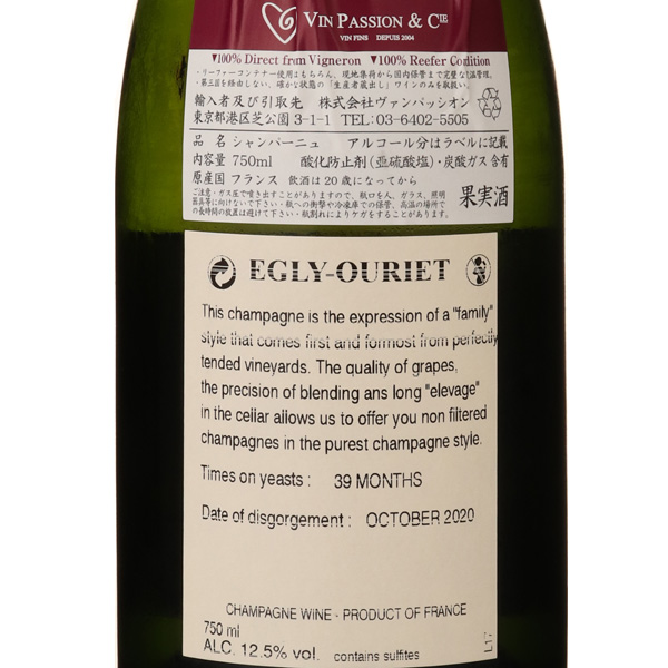 シャンパーニュ最高峰のピノ・ノワールが生まれるモンターニュ・ド・ランス地区において、他村を凌駕するのがアンボネイ村。そのアンボネイ村のメイン・ストリート通りを抜けた外れにエグリ・ウーリエは居を構え、合計11.7ha(グラン・クリュのアンボネイ7.7ha、ヴェルズネイ1.7ha, ブージィに0.3ha、そして1級のヴリニー村に2ha)の畑を所有します。1930年創業という長い歴史を持ちながらも無名に留まってきたドメーヌが転換期を迎えたのは1990年。フランシス・エグリ氏が4代目当主に就任してからです。フランシス氏は当主に就任するとすぐに、無農薬に近いアプローチへと栽培方法を変更しました。有機肥料を用いて機械を使わず手作業ですべての畑の手入れを行い、葡萄の木への人為的な介入を極力避けながら、葡萄の成長の手助けをします。そうして実にきめ細かく管理された畑から収穫された完熟した葡萄は、僅か1〜4.5g/Lのドザージュしか必要としません。