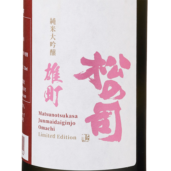 地下120Mの大きな岩盤の下を流れる鈴鹿山系愛知川伏流水を仕込み水とし、100%契約栽培により栽培法を定め十分に審査された酒米を、蔵人が時間をかけて精米。酒に味わいをつける箱麹法による麹造りや、酒質を決める社内保存酵母菌による速醸酒母と、昔ながらの生もと酒母の採用。また、発酵温度を低温に抑えながらも完全発酵を目指す小仕込み(1.2t以下)によるモロミ工程、そして瓶詰貯蔵による低温熟成管理(5℃以下)など、永年の経験による出来る限り丁寧な手造りで、深遠な味わいの「松の司」を醸しだします。(松瀬酒造HPより)