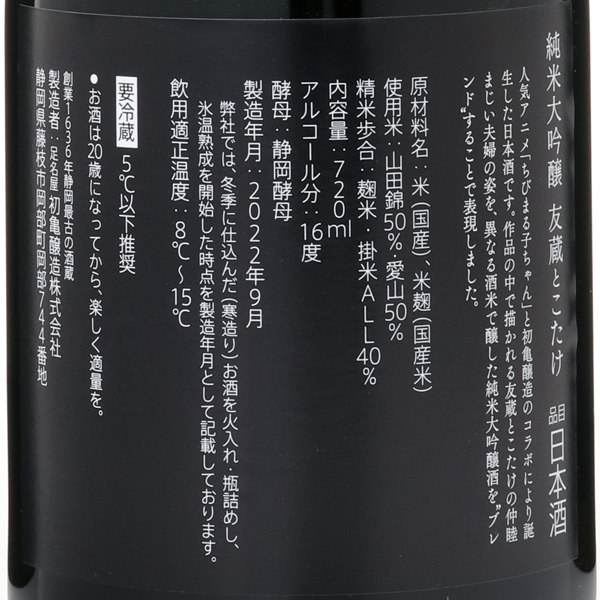初亀 純米大吟醸 友蔵とこたけ ちびまる子ちゃんコラボ *クール便のみ