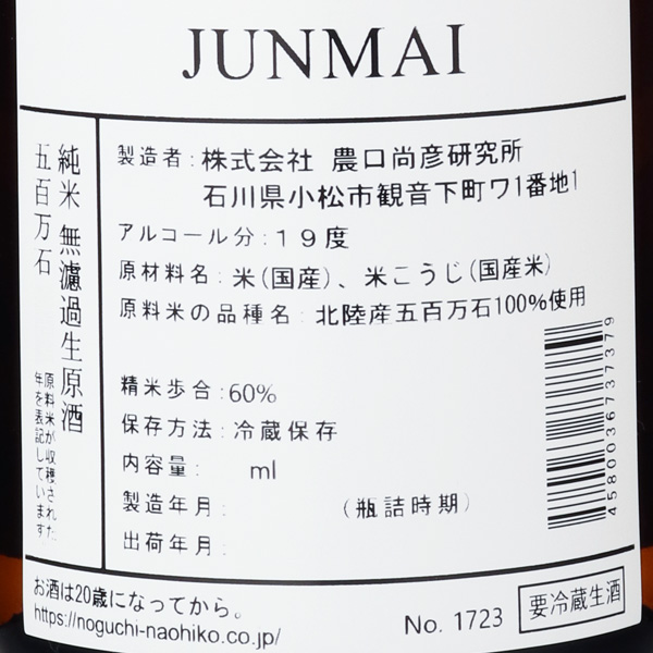 農口尚彦研究所 純米 無濾過生原酒 2021