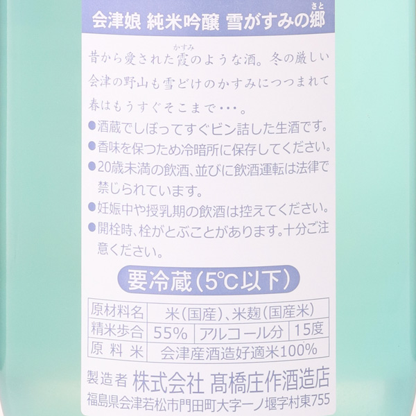 会津娘 純米吟醸 うすにごり 生 雪がすみの郷