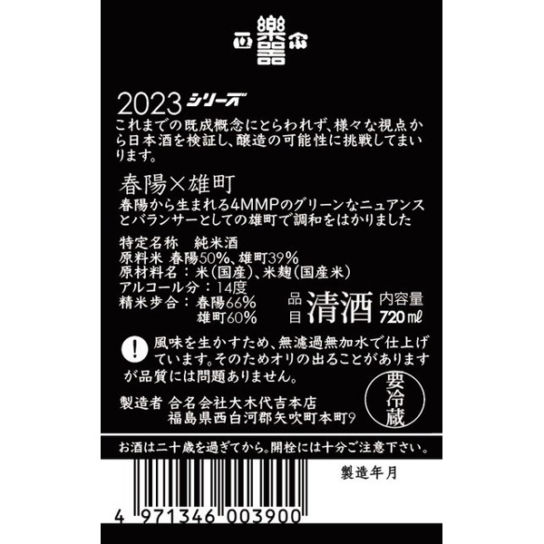 楽器正宗 純米 春陽×雄町 2023シリーズ
