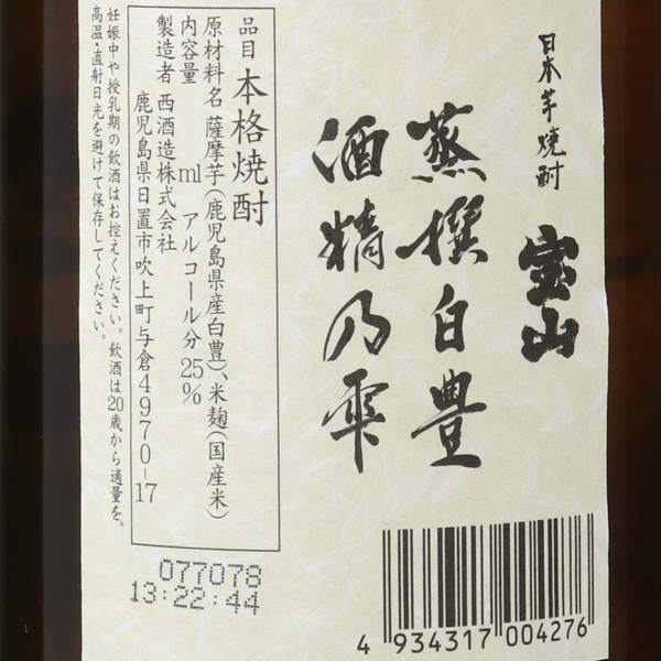 宝山 蒸撰白豊 芋焼酎 25度 / 西酒造