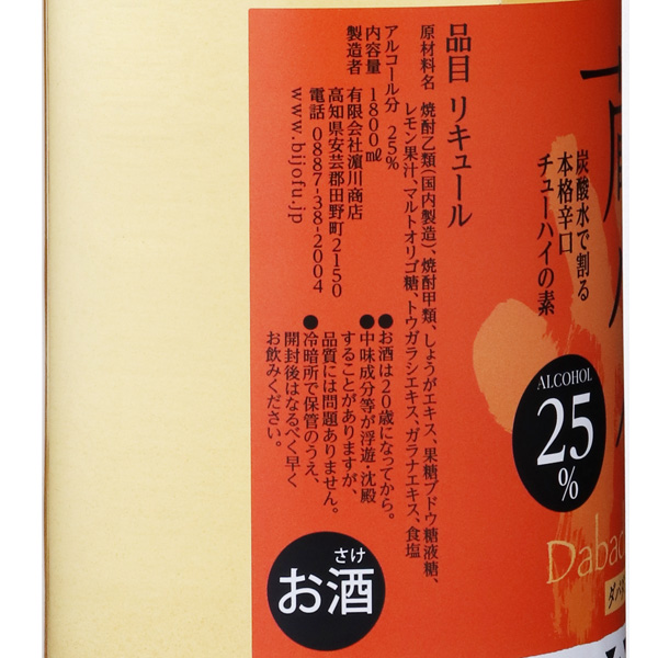美丈夫 蔵ハイ ダバダジンジャー 本格辛口チューハイの素 / 浜川商店