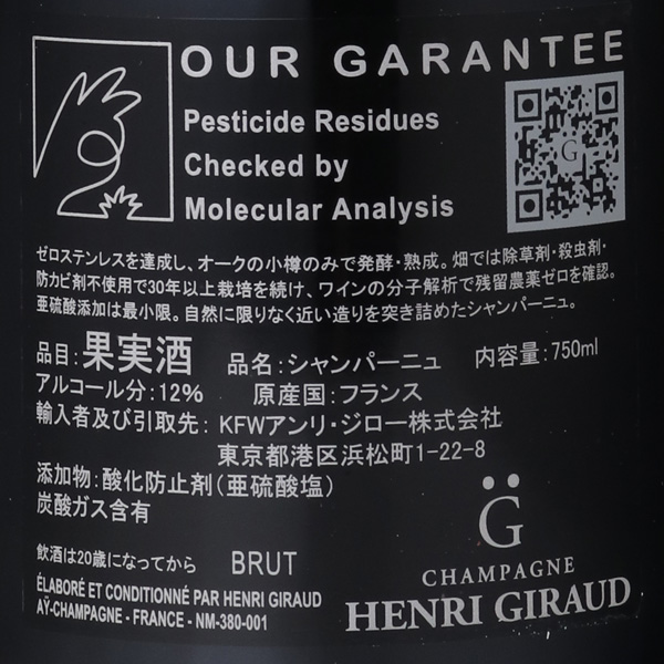 アンリ・ジローのスタンダードキュヴェ「エスプリ・ナチュール」がリニューアル!新たに「エスプリ・ナチュール G」として生まれ変わりました。アンリ・ジローの精神ともいえるエスプリ・ナチュールをより洗練させる方法を探し、様々なアプローチを行ってきたアンリ・ジローのセラーマスター セバスチャン・ル・ゴルヴェ。その妥協なき追求は醸造だけでなく当然栽培方法にもおよび、近年の気候変動や厳しい干ばつといった危機的要因への対策として、自ら自然に適応する自律的で環境応答型の高品質ブドウに育てるべきという、困難ではありますが王道の理論を信じて栽培方法の改良を続けました。トリプルゼロ(殺虫剤ゼロ、除草剤ゼロ、防カビ剤ゼロ)の先駆者でもあるアンリ・ジローの畑は、いまや他では見られない素晴らしい畑となっています。アルゴンヌの森でも特に上質なオークが育つエリア「シャトリス」産のオーク樽の巧みな調整も、アンリ・ジローにおいて欠かせない個性です。