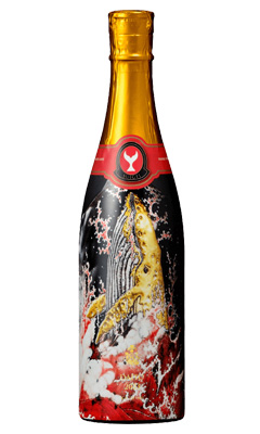 本年のデザインは、石川県能美市に工房を構える陶芸家、牟田陽日(むたようか)氏とのコラボレーションです。牟田陽日氏デザインによる九谷焼の白黒一対の馬上杯は「酔鯨という酒蔵の名前のとおりに浮かんだ」意匠です。お酒を注ぐ前からほろ酔い心地で海底に踊る2 匹の鯨を金色の転写であしらいました。澄んだお酒を注げば、底の金の鯨が喜ぶようにキラキラと揺らぎます。いつものひと時にも、また記念品としてもお使いいただけます。お気に入りの日本酒と共に末永く楽しんでいただければ幸いです。