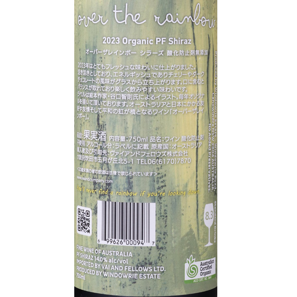 オーバー・ザ・レインボー オーガニック シラーズ 2023 辰ラベル / ウインダウリー・エステート