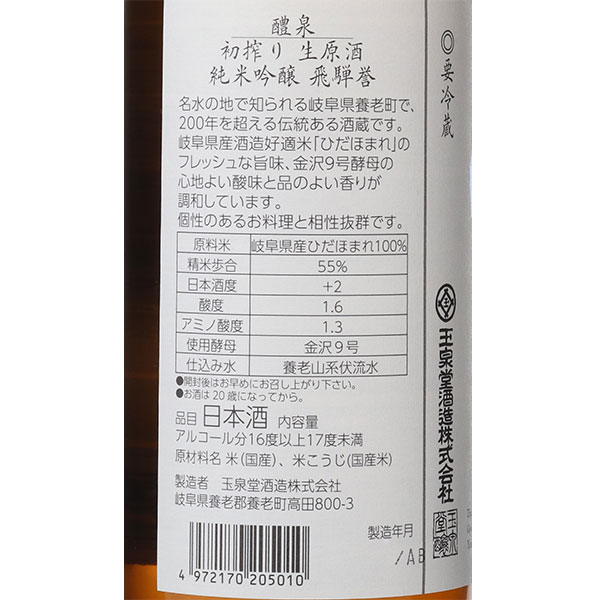 醴泉 純米吟醸 飛騨誉 初搾り生原酒