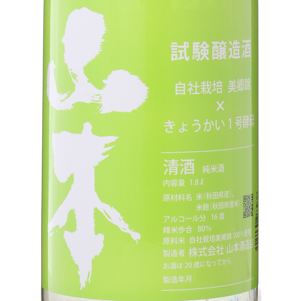 自社栽培の「美郷錦」を使用し80%まで精米、そして「きょうかい1号酵母」で醸しました。この商品は蔵元の山本が自らトラクターで耕起し、買い替えた新車のコンバインを泥だらけに汚し刈り取った美郷錦と、100年前の酵母で仕込みました。7 月の記録的な豪雨や9 月の記録的な猛暑により栽培は困難を極めた事により、米を磨くのは勿体無いと精米は80% にあえて抑えています。クラシック酵母を現代の低温発酵させた事により山本らしいシャープでキレのある酒質に仕上がりました。今回のみの限定酒となりますので、皆さまどうぞお楽しみください。(山本社長談)