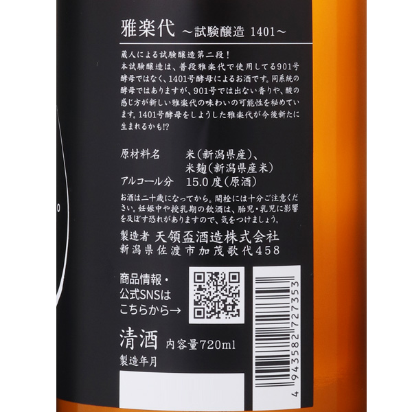佐渡の地で天領盃酒造が目指すスタイルは、「新しい新潟淡麗」。佐渡のやわらかな天然水と農家さんの努力が詰まった減農薬米によって造られた、キレイで軽くフレッシュなお酒――雅楽代を通じ、時代の変化に合わせてアップデートした「新しい新潟淡麗」を表現していきたいと、日々酒造りを行っています。