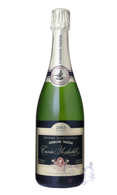 このワインは、上質の白ワイン(自社農園収穫、シャルドネ種100%)を、フランス・シャンパーニュ地方の伝統的製法によって瓶内発酵をさせ、醸造した発泡ワインです。2015年3月6日オリ引き、2003年は、近年にない良質のしあがりであったため、繊細な味をひきだすため、瓶内での澱との接触期間を通常より長く11年となりました。(通常3年)。 優雅な泡立ちのドメイヌ・タケダ キュベ・ヨシコ。 そのきらめく味わいを、どうぞご賞味ください。グラスに注いだ時の細やかな泡立ちは、二次発酵で酵母が生んだ炭酸ガスがワイン中に溶け込んだものです。この気品ある泡立ちが、ますますワインを香りたかく、すっきりとさせています。 ヨシコとは、ワイナリー発展に尽くし、ワインを愛してやまない四代目夫人にちなんだものです。