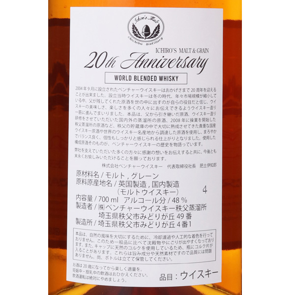 【プラチナ会員】イチローズモルト&グレーン 20th アニバーサリーエディション 48度 / 秩父蒸溜所